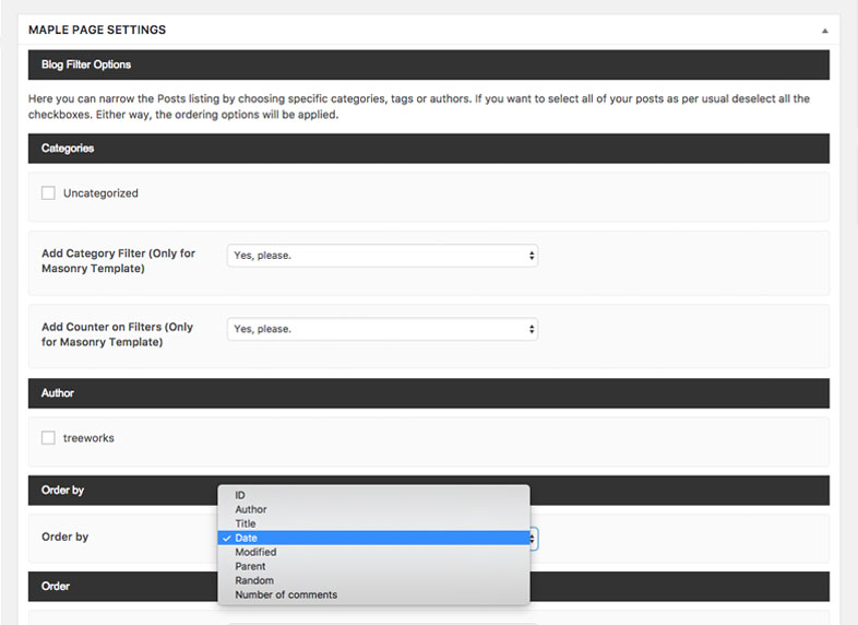 - Now over the page you've created, just scroll a bit down to the end of the page, and go to Blog Style and set your options relative to the Blog Masonry Template.