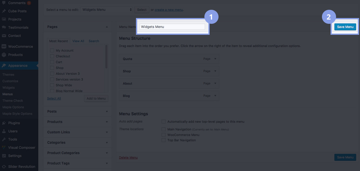 Note that on the theme you will not find Cube Posts because in the theme we use our own post type called Projects