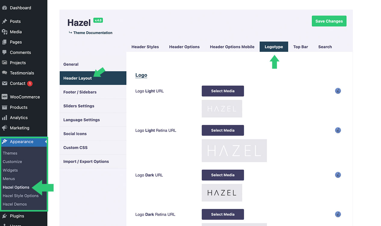 - Go to menu Appearance -> Hazel Options -> Save Changes (Green Button at the top right corner)