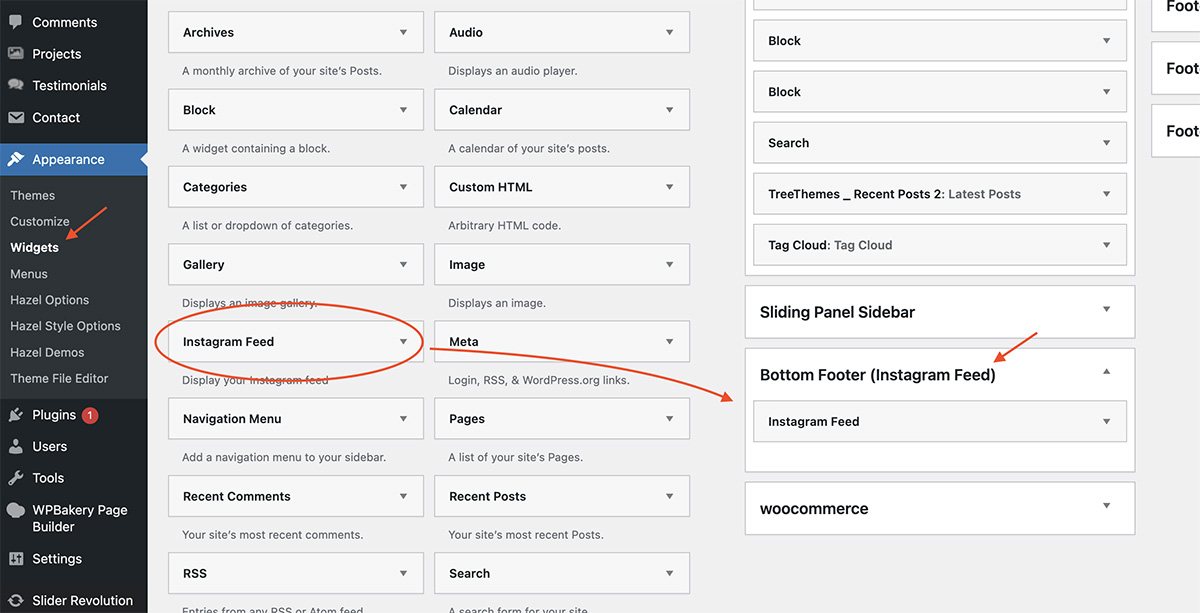 - 1. and 2. Drag-and-drop widgets you'd like to use into "Your Sidebar" widget area, here's an example: