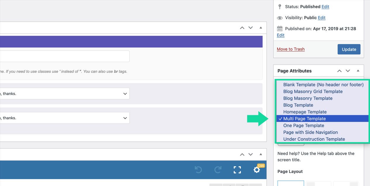 - Now over the page you've created, just scroll a bit down to the end of the page, and go to Blog Style and set your options relative to the Blog Masonry Template.