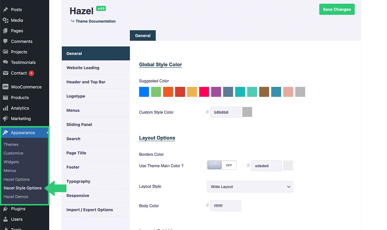 - Go to menu Appearance -> Hazel Style Options -> Save Changes
