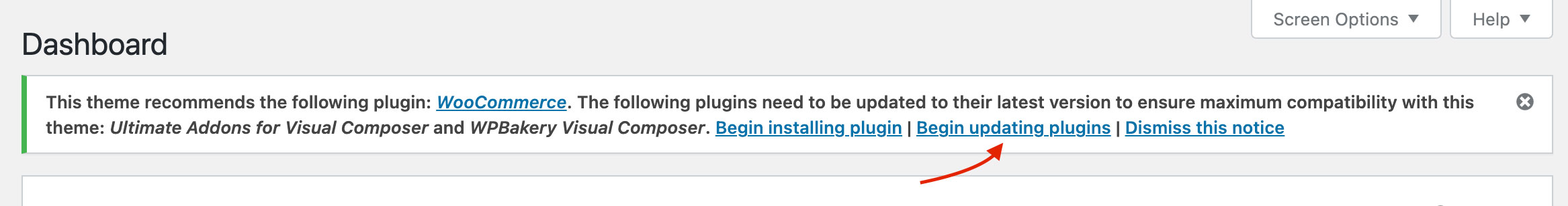 To update the plugins click on Begin update plugins in the top notice that appears on your wordpress dashboard